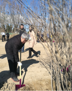 没有启动仪式,也没有欢迎和陪同的人员,部长们一下车就纷纷拿起铁锹、拎起水桶来到树苗前,自动结成劳动小组,相互配合着扶正树苗,挥锹铲土、培打围堰、提桶浇水,在志愿者的协助下栽种下一棵棵油松、银杏、国槐、玉兰、海棠花。各个环节衔接有序,到处都是忙碌的身影和劳动的欢声笑语。